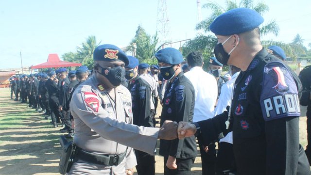Satuan Brimob Polda Papua Batalyon D Pelopor Merauke menggelar apel gabungan bersama BKO Brimob Gorontalo.Apel gabungan sebagai apel perpisahan antara Brimob Merauke dan BKO Brimob Gorontalo usai melakukan pengamanan bersama PON XX Papua. Danyon Brimob Merauke, AKP Clief Gerald Philipus Duwith mewakili seluruh keluarga besar Batalyon D Pelopor Brimob Merauke mengucapkan terima kasih atas kunjungan dan kerja sama BKO Brimob Gorontalo. “Jika ada salah kata dan perbuatan selama bertugas, mohon dimaafkan. Selamat jalan dan bertugas di tempat yang lain,” katanya, Selasa (19/10).