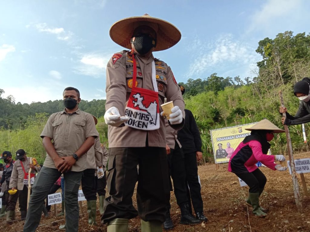 Kapolda Papua Irjen Pol. Mathius D. Fakhiri memimpin penanaman tanaman pangan di Spot Pertanian Kampung Binmas Noken Polresta Jayapura Kota, di Jalan Poros Koya Tengah, Kamis (15/04/2021) sore.