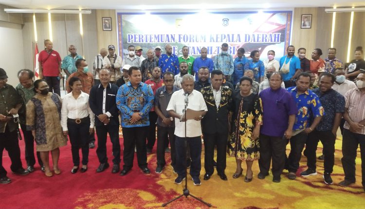 Konsistensi Forum Bersama Wilayah Adat Tabi dituangkan dalam pernyataan sikap yang dibacakan langsung oleh Ketua Forum Kepala Daerah se Tanah Tabi yang juga sebagai Bupati Kabupaten Jayapura Mathius Awoitauw, Jumat 11 Maret 2022 di salah satu hotel di Sentani, Kabupaten Jayapura.