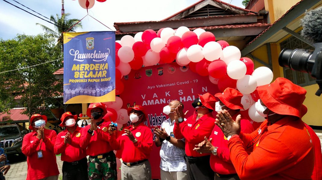 Gubernur Papua Barat Dominggus Mandacan melaunching vaksinasi COVID-19 untuk pendidikan, baik bagi tenaga pendidik dan siswa/siswi SMA dan SMK yang ada di Kabupaten Manokwari yang difokuskan di SMA Negeri 1 Manokwari, Jumat (20/8/2021).