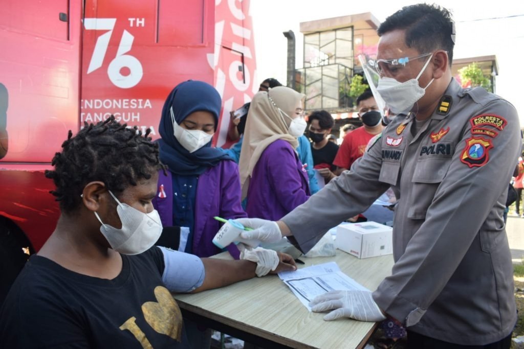 Menyambut Dirgahayu Kemerdekaan Republik Indonesia ke-76, sebanyak 12 pelajar Papua yang tinggal di Yayasan Pondok Efrat Anggaswangi Sukodono, Sidoarjo, mendapatkan suntikan vaksinasi Covid-19 tahap pertama dari Polresta Sidoarjo, Jumat (13/8/2021).