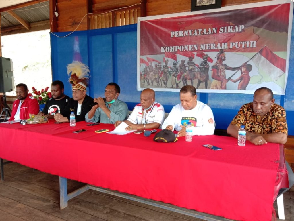 Komponen Barisan Merah Putih (BMP) RI di Papua mengeluarkan pernyataan sikap soal komitmen, untuk mengawal seluruh kebijakan pemerintah RI. Mereka menyampaikan 7 poin sebagai sikap komitmen mereka.
