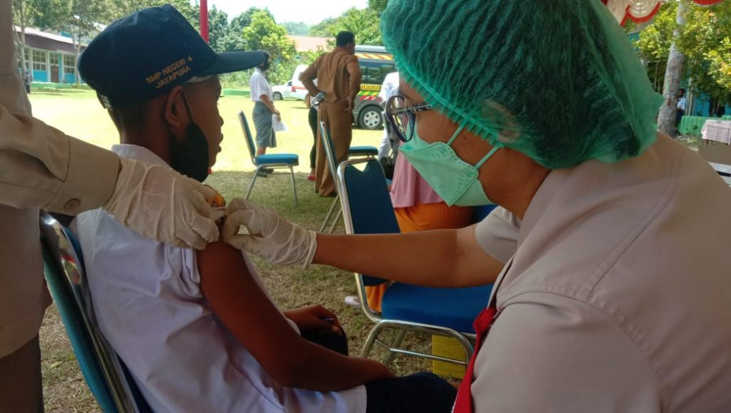 Vaksinasi massal terus digencarkan pemerintah, salah satunya digelar Pengurus Besar Esports Indonesia (PBESI) bersama Komunitas Esports Nasional, berkolaborasi dengan BIN, TNI-Polri menggelar vaksinasi massal untuk pelajar dan masyarakat umum dipusatkan di SMPN 4 Jayapura, SMP Al Ihsan, Kotaraja dan SMP YPPK Kotaraja Dalam, Senin (20/9/2021).