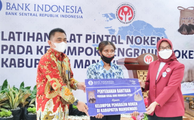 Bank Indonesia Perwakilan Papua Barat memberikan pelatihan alat pintal Noken kepada kelompok pengrajin noken di Kabupaten Manokwari. Kegiatan dilakukan di kantor Dekranasda Provinsi Papua Barat, Rabu 28 April 2021.