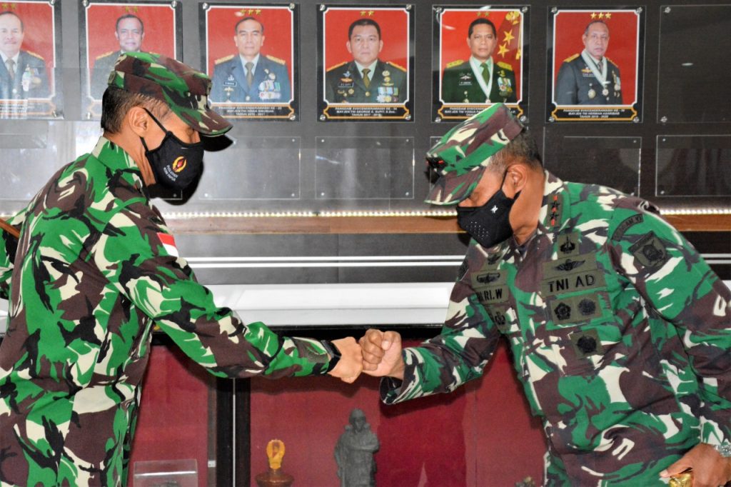 Pangdam XVII/Cenderawasih Mayjen TNI Ignatius Yogo Triyono, M.A menerima kunjungan kerja Pangdam VI/Mulawarman Mayjen TNI Heri Wiranto, S.E., M.M., M.Tr (Han) bertempat di Ruang Cycloops Makodam XVII/Cenderawasih, Rabu (22/9/2021).