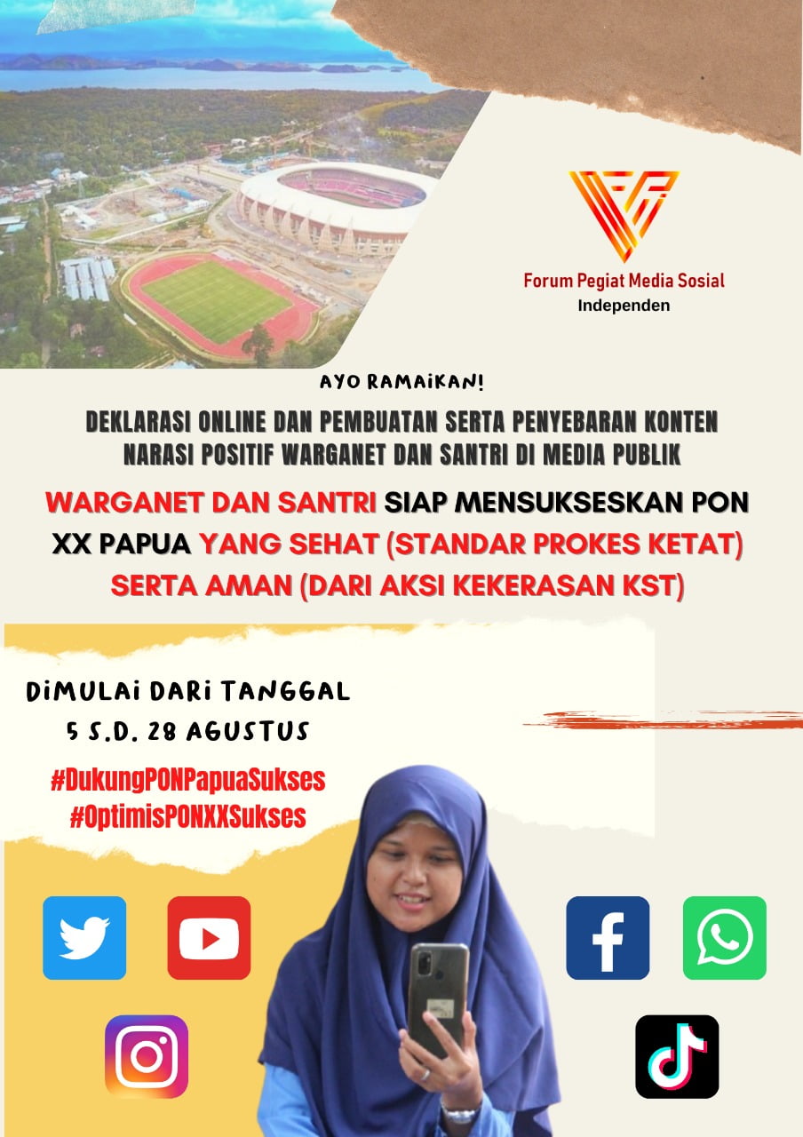 Komunitas FPMSI juga mengajak dan mensosialisasikan PON XX Papua di jagat media sosial lewat aksi posting konten informasi positif seputar PON XX dan kegiatan deklarasi virtual warganet dan kalangan santri dalam rangka mendukung suksesnya penyelenggaraan PON XX Papua, dengan isi deklarasi sebagai berikut.