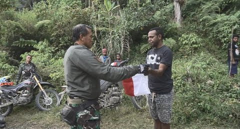 Setelah bendera diberikan, warga tersebut langsung mengibarkannya di salah satu pohon pisang raksasa, di pinggir hutan yang berada dekat dengan mereka. Letak pohon tersebut juga tidak jauh dari tempat mereka menghentikan rombongan Pangdam Kasuari. Setelah diberikan bendera merah putih, warga memanjat pohon tersebut dan menancapkan bendera dan selanjutnya dilakukan penghormatan.